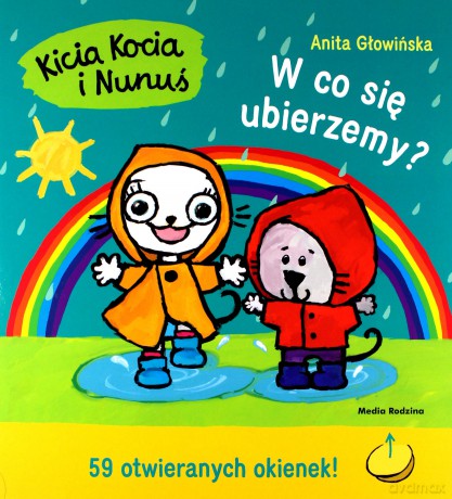 Kicia Kocia i Nunuś wiedzą, że w każdą pogodę można się dobrze bawić, trzeba się tylko odpowiednio ubrać. Nunuś wkłada kalosze, kiedy pada, ubiera się ciepło, kiedy jest mroźnie, a na plażę zabiera okulary przeciwsłoneczne i krem z filtrem. Nunuś wie już wszystko o pogodzie! Wszystkie odpowiednie ubrania i przedmioty ukryte są w otwieranych okienkach. [Powyższy opis pochodzi od wydawcy]